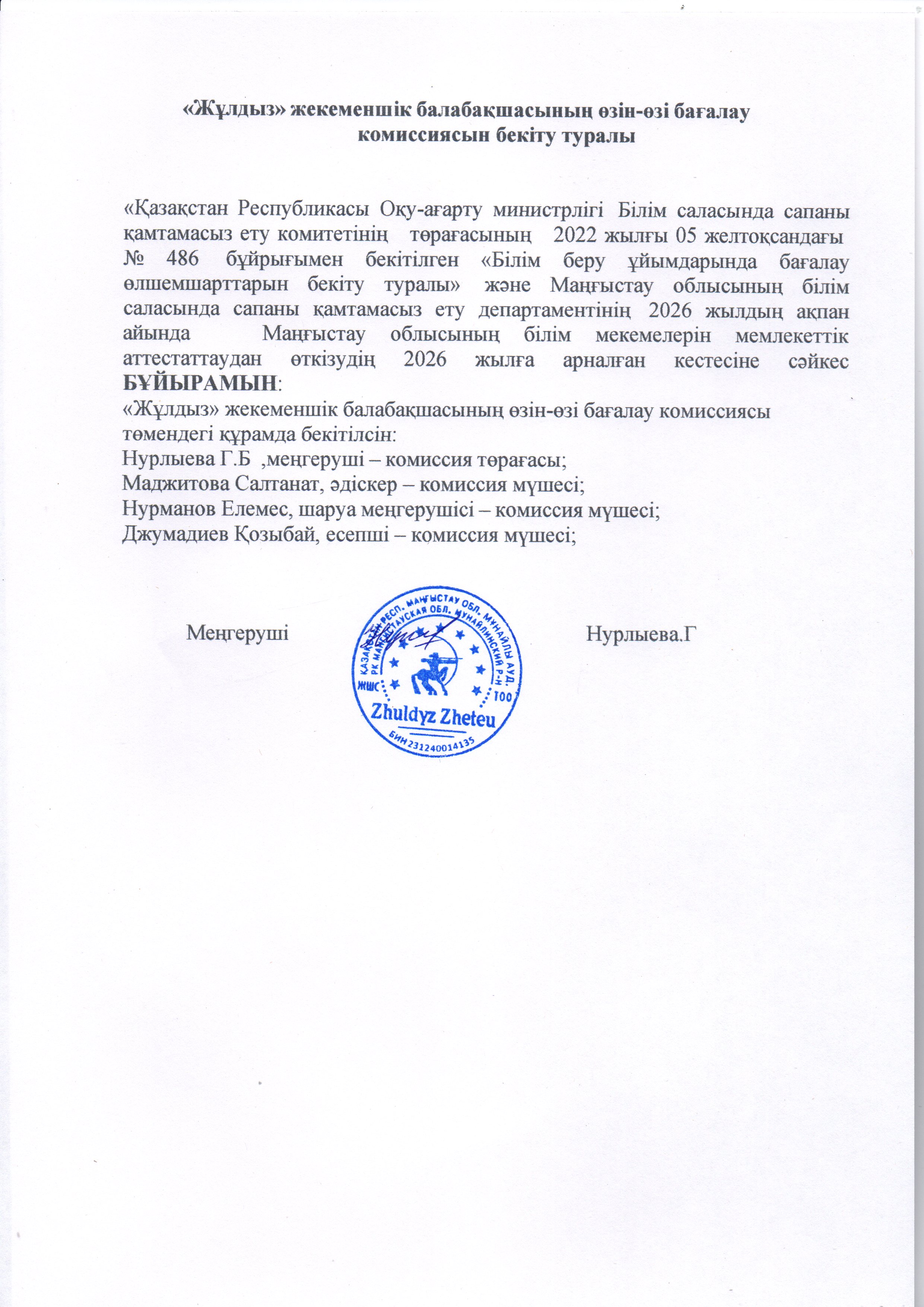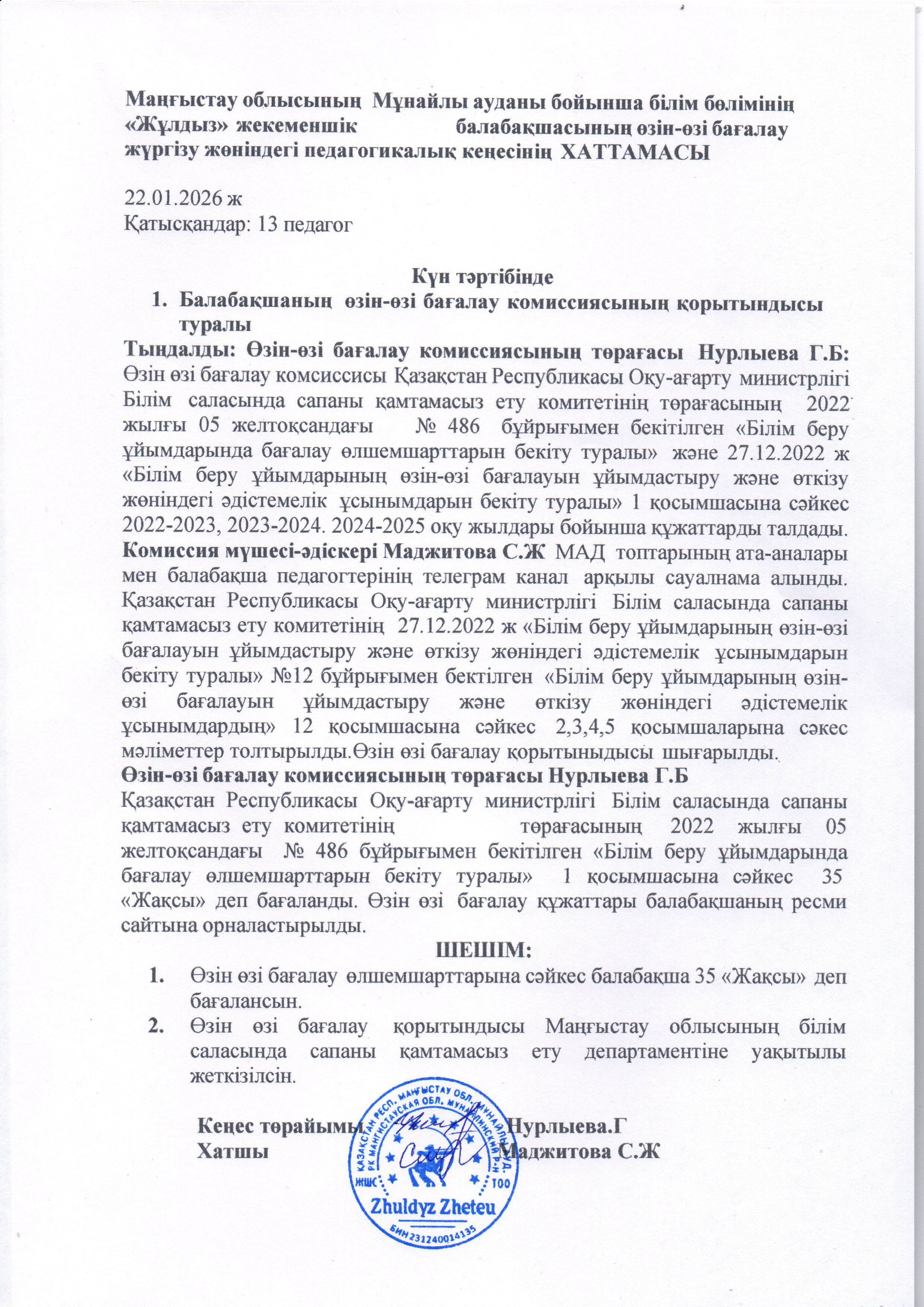 Өзін-өзі бағалау қорытынды Жұлдыз бб